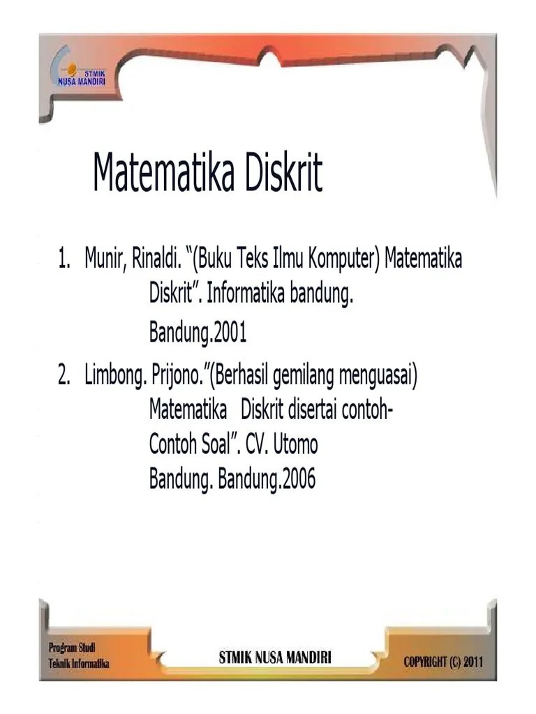 If2122 probabilitas dan statistik materi: If2220 teori bahasa dan otomata materi: If2130 organisasi dan arsitektur komputer materi: Garis sejajar garis sejajar adalah suatu kedudukan dua garis pada.dalam mengerjkan soal matematika kitaharus selalu latihan terus menerus agar bisa memahami materi tersebut. •matematika diskrit memberikan dasar untuk banyak mata kuliah mata kuliah: Himpunan semua pemecahan system persamaan linear disebut himpunan pemecahan sistem persamaan linear.